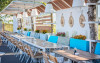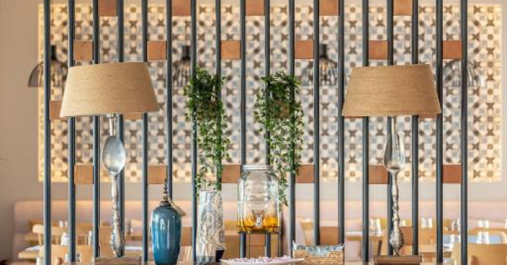 Zilnic este servit un mic dejun continental sau tip bufet. Oaspetii pot lua masa la restaurantul hotelului, care este specializat in bucătăria grecească.