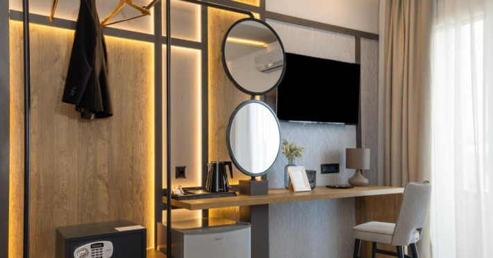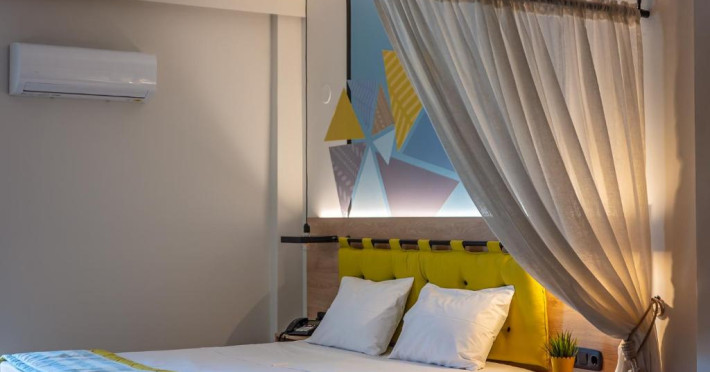Camerele hotelului sunt prevăzute cu dulap, TV cu ecran plat si baie privată. De asemenea, camerele de la Mythic Hotel oferă aer conditionat, iar unele au balcon.
