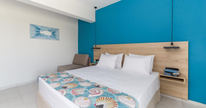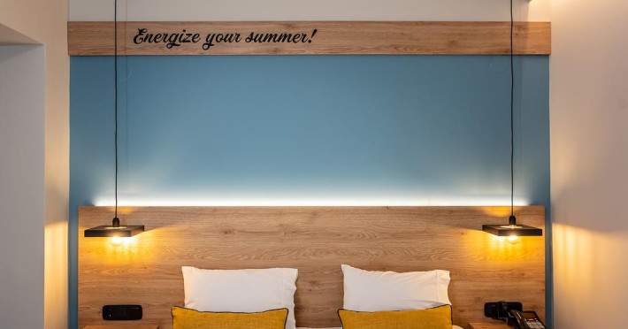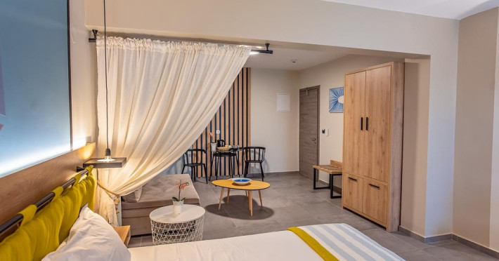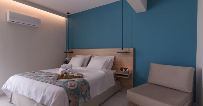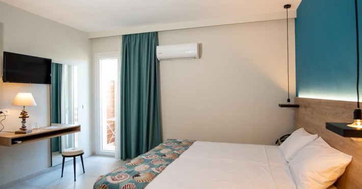 Sunt disponibile 46 camere. În camere există baie cu cadă sau duș ce are în dotare foehn și articole de toaletă gratuite. Unele camere au balcon, cu vedere la grădină, unde oaspeții se pot relaxa în compania celor dragi. Oaspeții au la dispoziție serviciul de room service pentru a servi masa sau diverse băuturi. Camerele confortabile de la Mythic Summer au pardoseală de gresie/ marmură, aer condiționat, Tv cu canale prin satelit și seif. Curățenia in cameră se face zilnic. Fiecare unitate de cazare are frigider. Proprietatea oferă camere pentru familie cu o suprafață mai mare și un număr mai mare de paturi față de cele standard. Se pot rezerva de asemenea camere pentru nefumători.