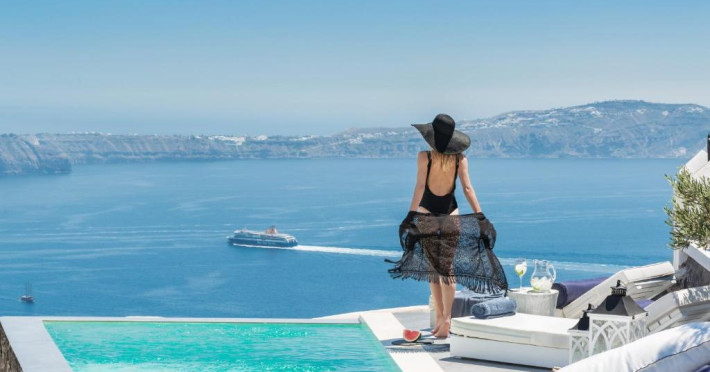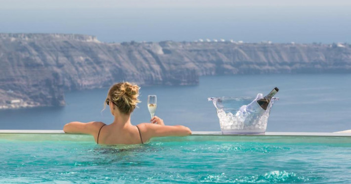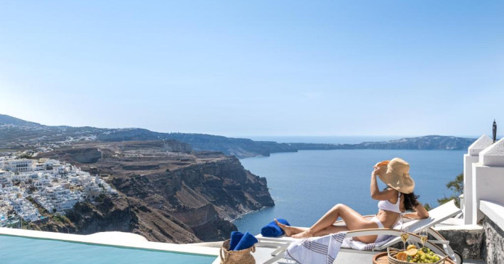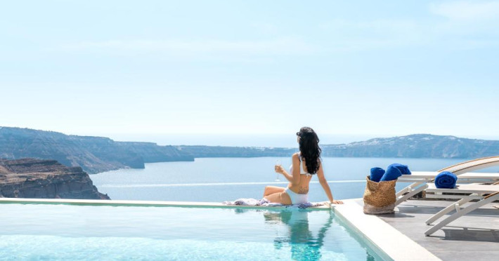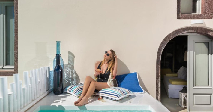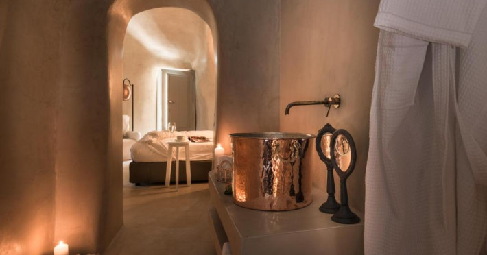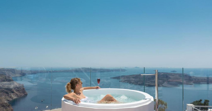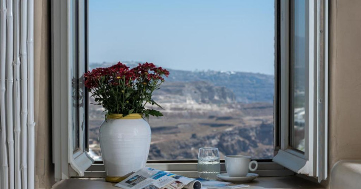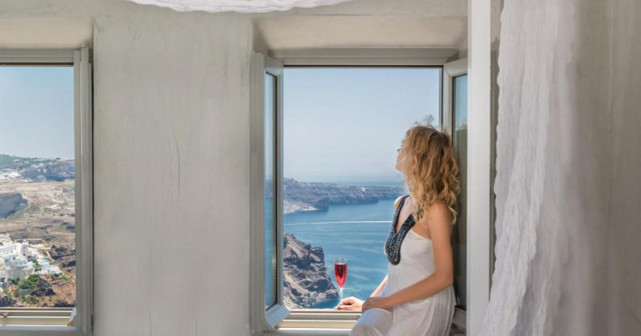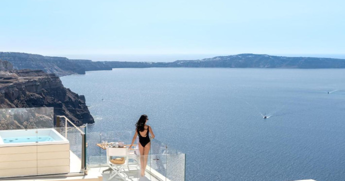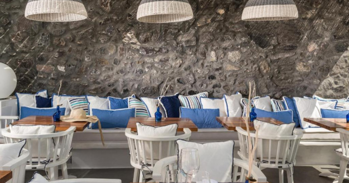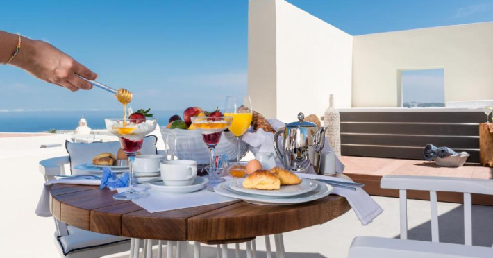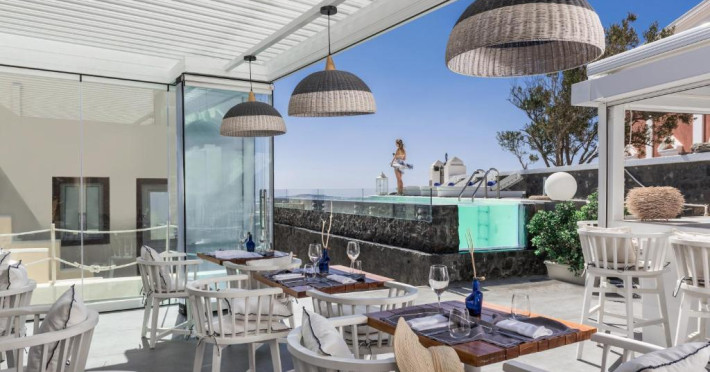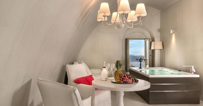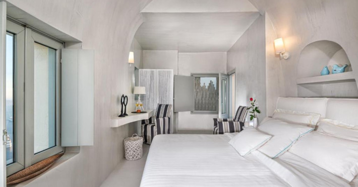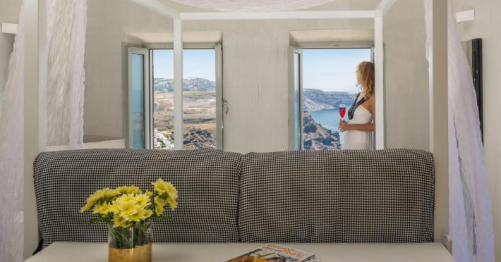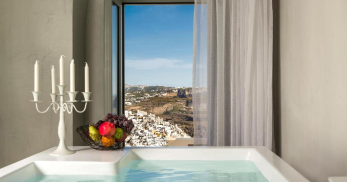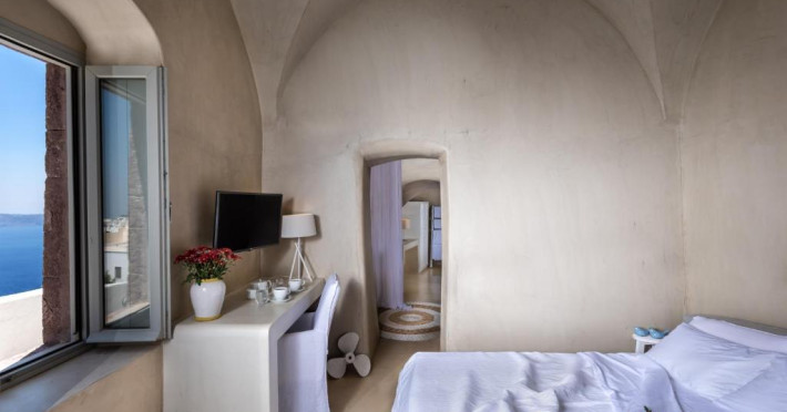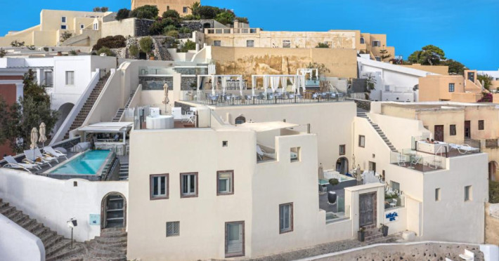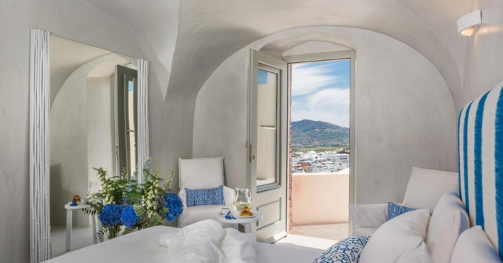 Mythical Blue Luxury Suites este situat la capătul orașului Fira, intr-o clădire protejată, complet renovată, din 1855.