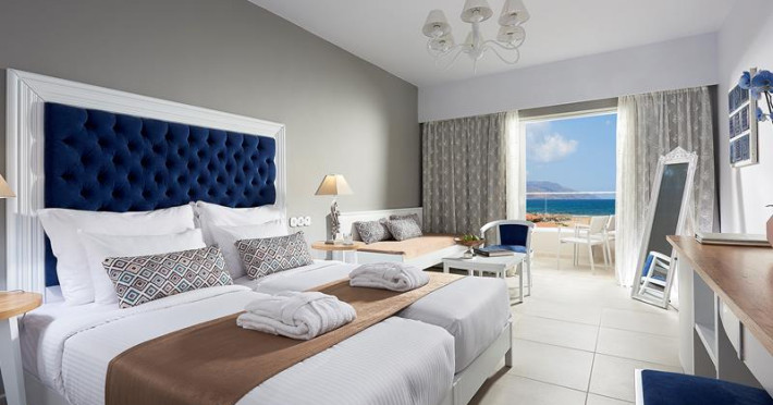 Mythos Palace Resort & Spa este un complex de lux, complet renovat și recent deschis, cu o rating de 5 stele, situat în fața mării, într-o zonă declarată rezervație naturală protejată din Kavros.
