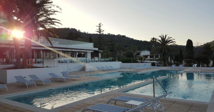Grădinile magnifice ale hotelului oferă oaza ideală pentru a evada si a face o plimbare. Puteți beneficia de o priveliște superbă la pădurile de pini din apropiere, tipice coastei mediteraneene. Hotelul oferă facilităti sportive minunate, piscină pentru adulți si piscină pentru copii, grătar, bar si local cu autoservire.