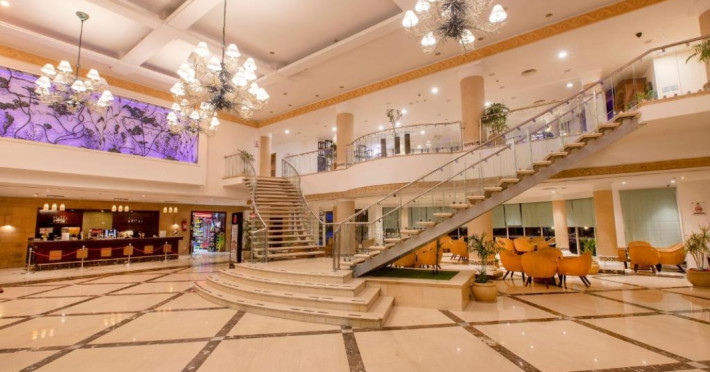 The hotel Naama Bay Hotel Resort ***** is located approximately 200 m from the private beach. The city centre is around 7 km away. There is a shuttle between the hotel and the airport (for a fee). The beach is patrolled by a lifeguard. Here, there The hotel Naama Bay Hotel Resort ***** is located approximately 200 m from the private beach. The city centre is around 7 km away. There is a shuttle between the hotel and the airport (for a fee). The beach is patrolled by a lifeguard. Here, there are cushions and beach towels available. Cold drinks are served at the beach bar. To reach the beach a shuttle is provided. The hotel has a 24h reception, a lobby bar, Wi-Fi (for a fee), internet access, a lift, a shop, cash machine, a hairdresser, a first aid kit as well as parking spaces. In the outdoor area of the property you will find a seasonally heated pool (open all year), where sun loungers, sun umbrellas and pool towels are available for free. There is also a separate childrens pool with 3 water slides. You can store your valuables in the safe, and your luggage in the hotels storage room. For your entertainment, the hotel offers a library/reading room and a disco. For very young guests, kids chairs can be provided. There is also a laundry service available at an additional cost to customers. For your comfort, in addition to the concierge service the hotel page will ensure you are looked after. If necessary, you can contact the medical centre at any time (for a fee). Guests at the accommodation can get a wake-up call from the hotel personnel. For conventions and other business meetings, the hotel offers EXTRA_FEE conference rooms. In addition, the hotel sells tickets for excursions. Due to its barrier-free facilities , such as separate, barrier-free entrances, wheelchair accessible rooms and a wheelchair accessible lift, the hotel is also suitable for wheelchair users. Catering As catering services the hotel offers all-inclusive and half board. Breakfast is offered continental or from the buffet. Enjoy your lunch from the buffet. Dinner is also served as a buffet or à la carte. Half board includes breakfast and lunch. As part of the all-inclusive service, local alcoholic beverages (24h) are available around the clock and at no extra charge. For the meals, there are a buffet restaurant with terrace (Italian, Mediterranean, calorie-reduced and vegetarian dishes) and several bars, a 24h snackbar as well as the pool bar. Appropriate clothing is required for lunch and dinner. Distances Airport: approximately at 15 km Hospital: approximately at 5 km Sports amp; Leisure To keep your fitness up on holiday, there is a gym for guests to use. In the surrounding you can also take advantage of a range of water sports, including banana and speedboat riding and water aerobics. If you want to stay on the ball during your holidays, youll find the chance to play football. During your holiday you can also take part in aerobics and yoga courses. There is also the option to play billiards. Furthermore, various water sports such as diving (including rental service) are offered in the area. A sauna (extra fee) awaits you in the wellness area. The hotel also offers massages (extra fee) and beauty treatments (extra fee). Spend some healthy and relaxing hours with heat therapy. Children can be looked after in the hotels own miniclub. Your accommodation offers a babysitting service (extra fee), so that adults can also find some time to relax. Junior hotel guests can let off steam in the mini disco. In terms of adult entertainment, evening shows and live music are presented and there is a games room available to use. Additional information The 5-storey accommodation has a total of 388 rooms. Of these, 2 rooms have disabled access. The hotel staff speak English and Arabic.Datorita dinamicitatii domeniului disponibilitatea ofertelor se modifica de la un moment la altul. De aceea ofertele sunt valabile in limita locurilor disponibile. Agentia nu este responsabila pentru eventualele neconcordante care pot aparea intre informatiile privind tarifele si alte detalii din site si informatiile primite in agentie. In aceste cazuri vor avea prioritate, intotdeauna, informatiile primite in agentie.