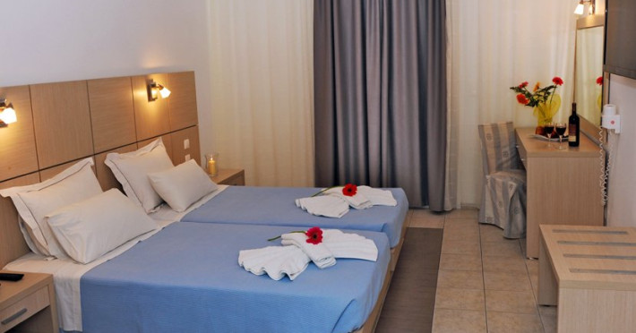 Facilitati camere: Camerele sunt spatioase si dotate cu baie proprie (dus), pardoseala din gresie, aer conditionat centralizat, telefon, TV prin satelit (ecran plat), frigider (minibar la cerere), seif , balcon sau terasa cu vedere la mare.