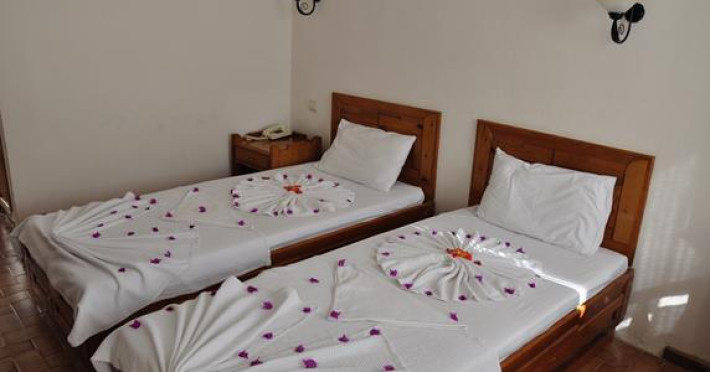A well-established beachfront hotel with its own section of the beach with complimentary sun loungers and parasols. There are spacious gardens with a large pool and sun-bathing terrace, a bar and an a la carte restaurant, all facing the beachfront. Built in the low-rise, white washed blocks that are a style typical to the Bodrum area. ------------------------- LOCATION; Gümbet bars, shops, restaurants and night clups are a few minutes walk away. The public bus (Minibus) passes in front of the hotel which links to the Bodrum Centrum (Bus Station) which is 3 km away. Also hotel is in close proximity to historical places such as Myndos Gate, Bodrum Castle and Amphitheatre. ROOMS; Hotel consist of 75 rooms. Rooms are simply furnished and equipped with air-conditioning, twin or double beds, private bathroom with shower, a TV , a phone and a french balcony or terrace. (The promotional rooms have no balcony/terrace or specific view.) HOTEL FACILITIES; 24 Hour Reception, Safe box (At reception, extra charges apply), Main restaurant (Breakfast/Dinner served), A la carte restaurant (Beachfront), Bar (Beachfront), Outdoor pool (adult/children), Beach, Parasol and lounge, Childrenâs playground, Car park, TV, Telephone, Pool Table/ Ping pong, Wifi (only public areas), Currency exchange. For more details click hereDatorita dinamicitatii domeniului disponibilitatea ofertelor se modifica de la un moment la altul. De aceea ofertele sunt valabile in limita locurilor disponibile. Agentia nu este responsabila pentru eventualele neconcordante care pot aparea intre informatiile privind tarifele si alte detalii din site si informatiile primite in agentie. In aceste cazuri vor avea prioritate, intotdeauna, informatiile primite in agentie.