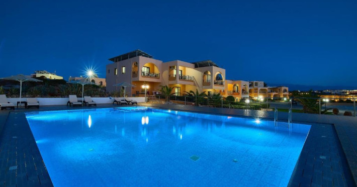 Complexul Nanakis Beach are 16 apartamente si studiouri si este construit intr-o zonă pitorească, pe o suprafată de 9.500 m². De la piscina in aer liber si din grădini, oaspetii pot admira privelistea superbă oferită de statiunea Stavros si de mare.