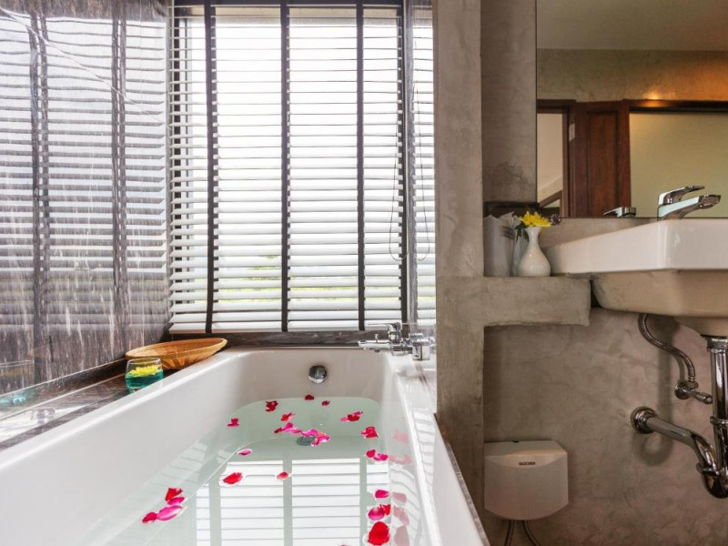 Dotari camere: Toate camerele dispun de 80 de camere cu: Tv, minibar, telefon, balcon privat cu vedere la munte, lac si padurea din orasul Krabi.
