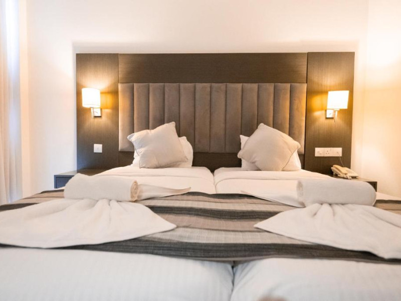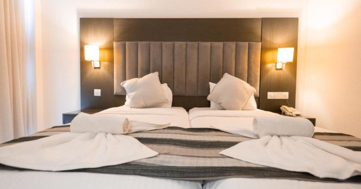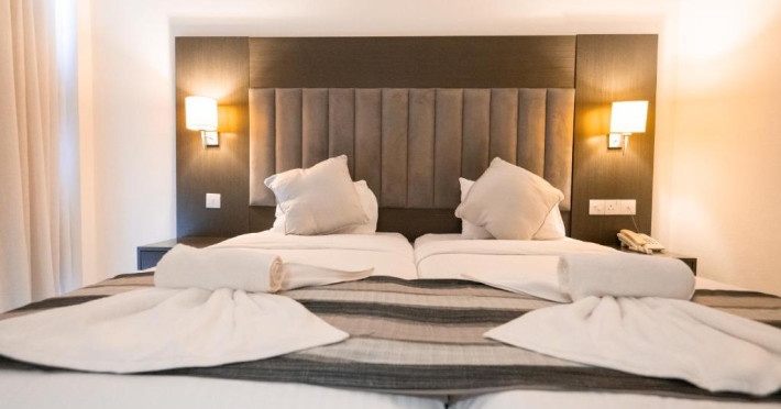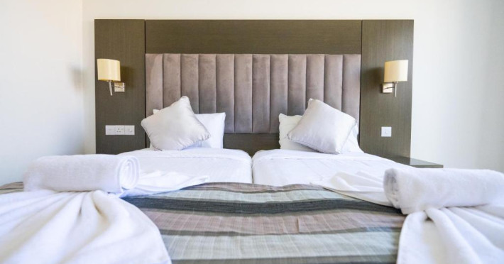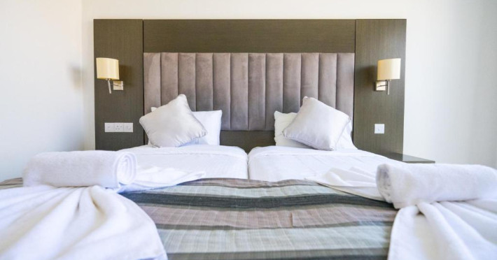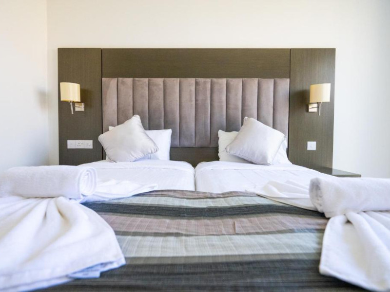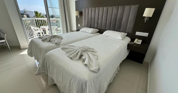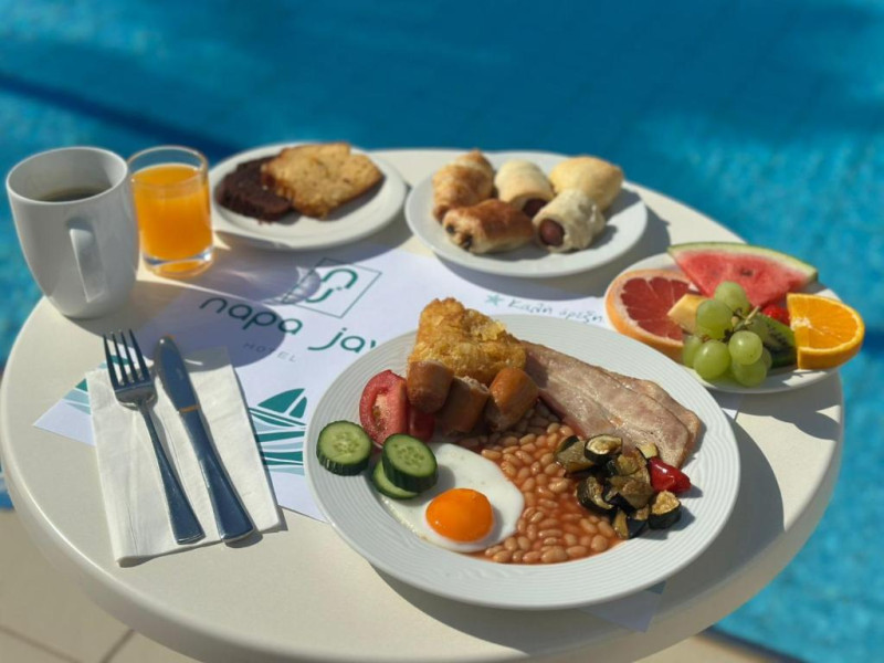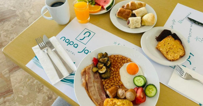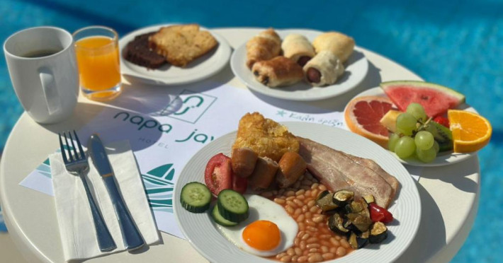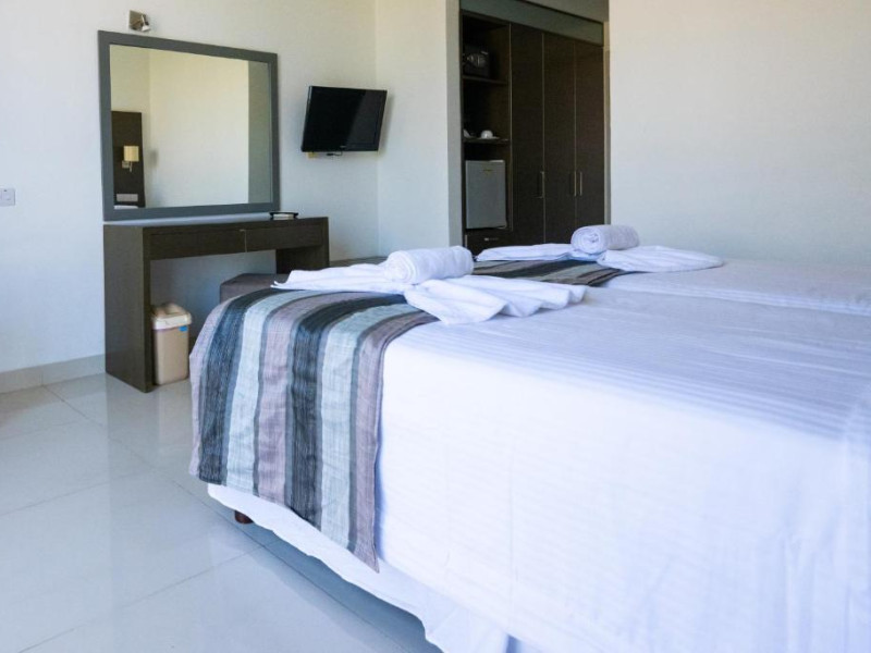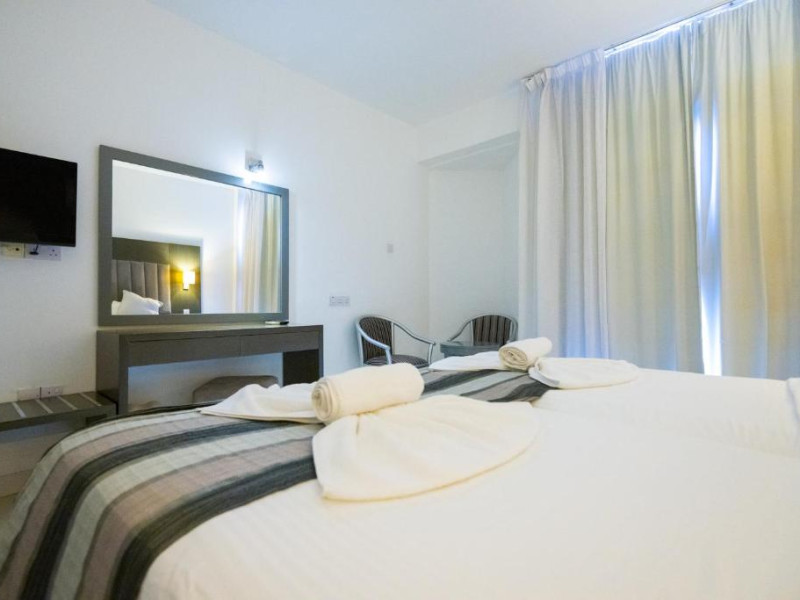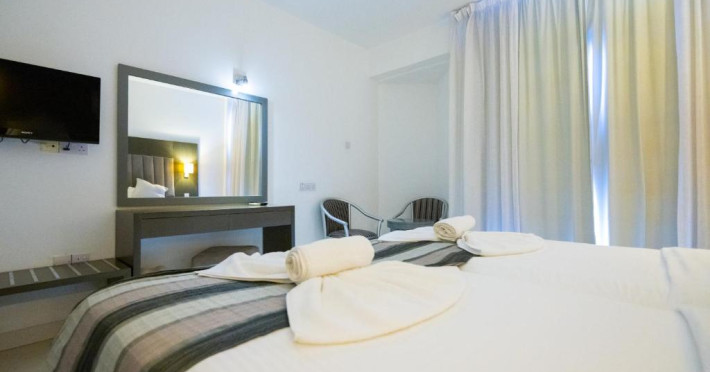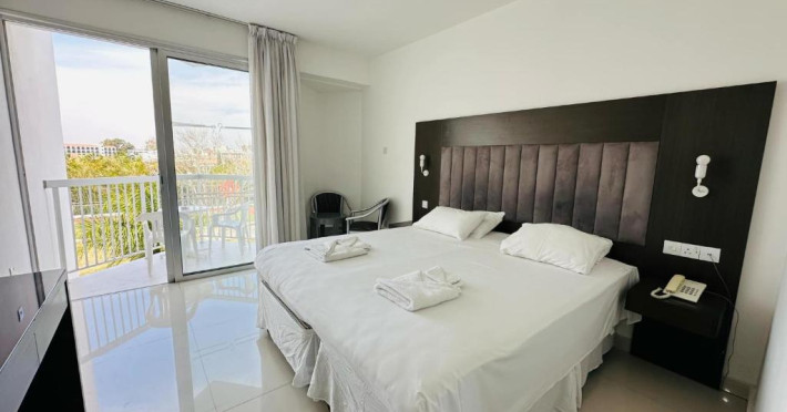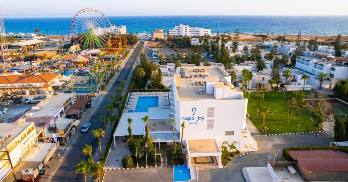Cazare confortabilă: Hotelul Napa Jay din Ayia Napa oferă camere de familie cu aer condiționat, baie privată și balcoane. Fiecare cameră include aparat de ceai și cafea, frigider și WiFi gratuit.
