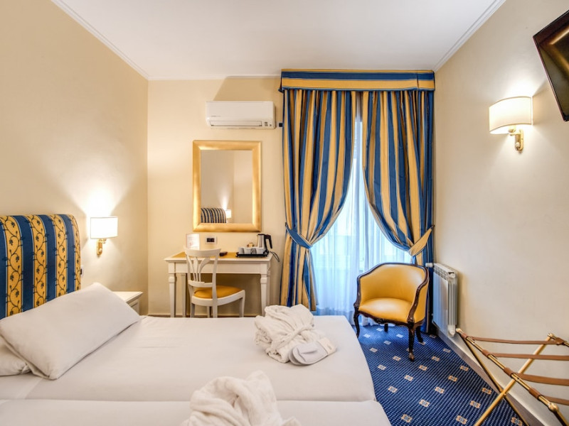 Take advantage of recreation opportunities such as a fitness center or take in the view from a terrace and a garden. Additional amenities at this hotel include complimentary wireless internet access, concierge services, and wedding services.lt;stronggt;Property Locationlt;/stronggt;lt;pgt;Napoleon Hotel is centrally located in Rome, a 4-minute walk from Teatro Brancaccio and 7 minutes by foot from Santa Prassede. This hotel is 0.5 mi (0.8 km) from Basilica di Santa Maria Maggiore and 0.7 mi (1.2 km) from Basilica di San Giovanni in Laterano.lt;brgt; Distances are displayed to the nearest 0.1 mile and kilometer. lt;br /gt; lt;pgt;Piazza Vittorio Emanuele II - 0.3 km / 0.2 mi lt;br /gt; Teatro Brancaccio - 0.4 km / 0.2 mi lt;br /gt; Santa Prassede - 0.6 km / 0.4 mi lt;br /gt; Basilica di Santa Maria Maggiore - 0.7 km / 0.4 mi lt;br /gt; Via Marsala - 0.9 km / 0.6 mi lt;br /gt; Basilica di San Giovanni in Laterano - 1 km / 0.6 mi lt;br /gt; Golden House of Nero - 1 km / 0.6 mi lt;br /gt; San Pietro in Vincoli - 1.1 km / 0.7 mi lt;br /gt; Teatro dellapos;Opera di Roma - 1.1 km / 0.7 mi lt;br /gt; Via Appia Nuova - 1.2 km / 0.7 mi lt;br /gt; Colosseum - 1.3 km / 0.8 mi lt;br /gt; Via Nazionale - 1.3 km / 0.8 mi lt;br /gt; Quirinale - 1.3 km / 0.8 mi lt;br /gt; Piazza della Repubblica - 1.4 km / 0.9 mi lt;br /gt; National Museum of Rome - Baths of Diocletian - 1.4 km / 0.9 mi lt;br /gt; lt;/pgt;lt;pgt;The nearest airports are:lt;br /gt;Ciampino Airport (CIA) - 27 km / 16.7 milt;br /gt; Fiumicino - Leonardo da Vinci Intl. Airport (FCO) - 29.2 km / 18.2 milt;br /gt; lt;/pgt;lt;pgt;The preferred airport for Napoleon Hotel is Fiumicino - Leonardo da Vinci Intl. Airport (FCO). lt;/pgt;lt;brgt; lt;stronggt;Roomslt;/stronggt;lt;pgt;Make yourself at home in one of the 75 guestrooms featuring minibars and LCD televisions. Complimentary wireless internet access keeps you connected, and satellite programming is available for your entertainment. Private bathrooms with showers feature complimentary toiletries and bidets. Conveniences include safes and complimentary newspapers, and housekeeping is provided daily.lt;pgt; lt;stronggt;Dininglt;/stronggt;lt;pgt;Enjoy Italian cuisine at Vivandiere du Napoleon, a bistro which features a bar/lounge, or stay in and take advantage of the 24-hour room service. Mingle with other guests at the complimentary reception, held on select days. Buffet breakfasts are available daily from 7:00 AM to 10:30 AM for a fee.lt;pgt; lt;stronggt;Business, Other Amenitieslt;/stronggt; lt;pgt;Featured amenities include a business center, limo/town car service, and express check-in. A roundtrip airport shuttle is provided for a surcharge (available 24 hours).lt;pgt;Datorita dinamicitatii domeniului disponibilitatea ofertelor se modifica de la un moment la altul. De aceea ofertele sunt valabile in limita locurilor disponibile. Agentia nu este responsabila pentru eventualele neconcordante care pot aparea intre informatiile privind tarifele si alte detalii din site si informatiile primite in agentie. In aceste cazuri vor avea prioritate, intotdeauna, informatiile primite in agentie.