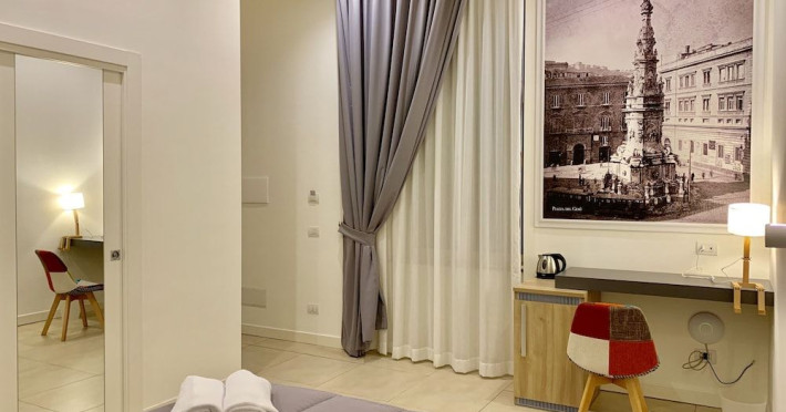 Ideally located in the Naples Historical Centre district of Naples, Napoli Squares Suites is set less than 1 km from Chiesa dei Santi Filippo e Giacomo, a 15-minute walk from San Gregorio Armeno and 1.5 km from Naples National Archeological Museum. Boasting a terrace, the guest house is close to several noted attractions, around 1.5 km from Museo Cappella Sansevero, 1.6 km from Catacombs of Saint Gaudioso and 1.9 km from MUSA. The accommodation offers a shared kitchen, and luggage storage for guests. All guest rooms come with air conditioning, a flat-screen TV with cable channels, a dishwasher, a kettle, a bidet, a hairdryer and a desk. With a private bathroom fitted with a shower and free toiletries, rooms at the guest house also feature free WiFi. All rooms feature a wardrobe. Maschio Angioino is 2 km from Napoli Squares Suites, while San Carlo Theatre is 2.2 km from the property. The nearest airport is Naples International Airport, 4 km from the accommodation.Ideally located in the Naples Historical Centre district of Naples, Napoli Squares Suites is set less than 1 km from Chiesa dei Santi Filippo e Giacomo, a 15-minute walk from San Gregorio Armeno and 1.5 km from Naples National Archeological Museum. Boasting a terrace, the guest house is close to several noted attractions, around 1.5 km from Museo Cappella Sansevero, 1.6 km from Catacombs of Saint Gaudioso and 1.9 km from MUSA. The accommodation offers a shared kitchen, and luggage storage for guests. All guest rooms come with air conditioning, a flat-screen TV with cable channels, a dishwasher, a kettle, a bidet, a hairdryer and a desk. With a private bathroom fitted with a shower and free toiletries, rooms at the guest house also feature free WiFi. All rooms feature a wardrobe. Maschio Angioino is 2 km from Napoli Squares Suites, while San Carlo Theatre is 2.2 km from the property. The nearest airport is Naples International Airport, 4 km from the accommodation.