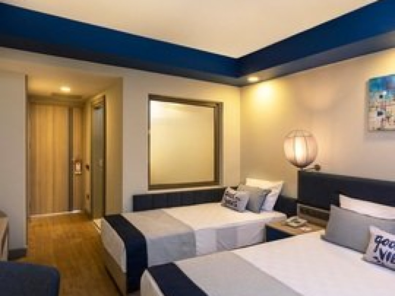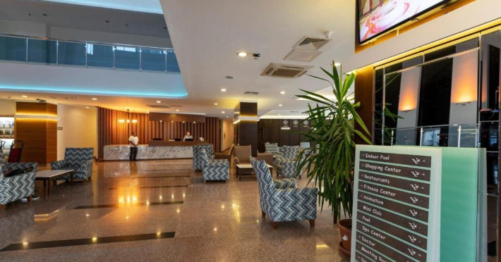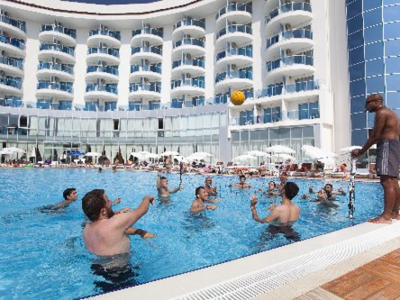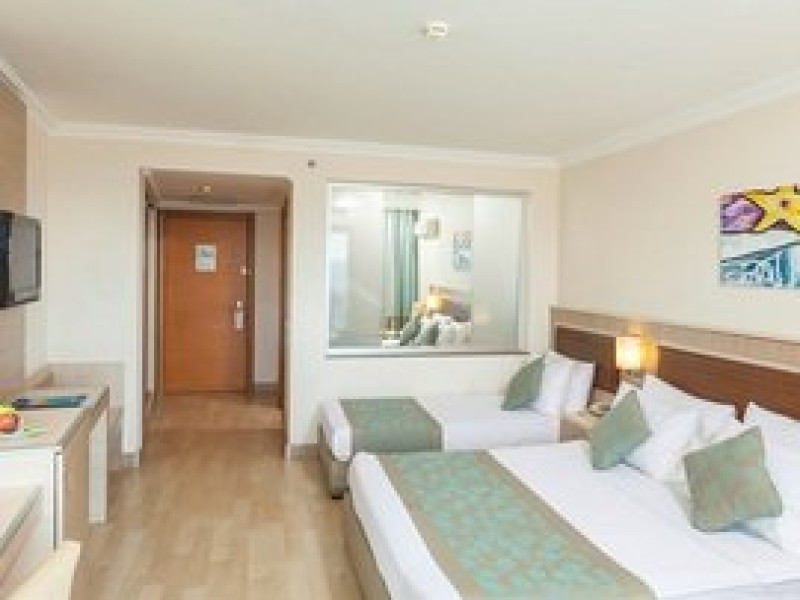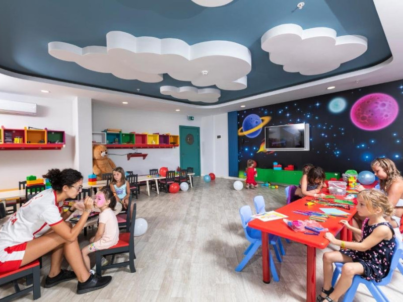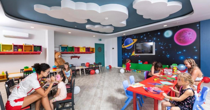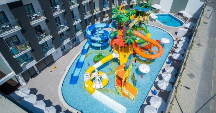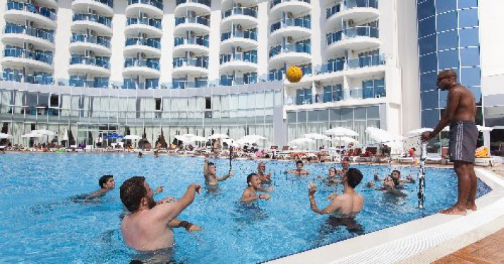 Facilitati hotel: Hotelul pune la dispozitia turistilor: receptie 24h, restaurant principal, restaurant a la carte, patiserie, bar, piscina exterioara, piscina interioara, tobogane cu apa, piscina pentru copii, animatie, spectacole de seara, disco, muzica live, diverse activitati sportive la piscina si pe plaja, centru fitness, miniclub pentru copii, sala de jocuri, centru wellness si spa cu baie turceasca, sauna, masaj, tratamente de infrumusetare, parcare gratuita, zona de plaja privata cu sezlonguri si umbrele.