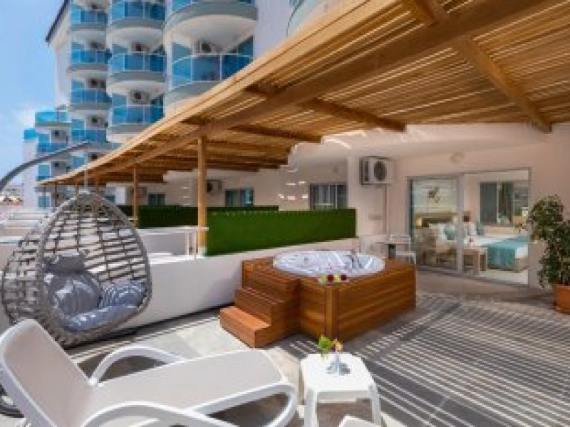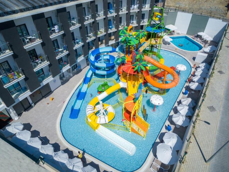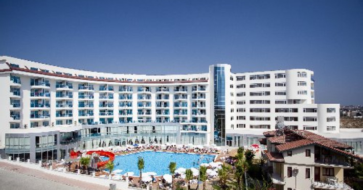 Descriere: Hotelul situat la doar 5 km de centrul orasului Side, cu amfiteatrul antic si Templul lui Apollo, ofera zona de plaja privata, piscina si tobogane cu apa.Hotelul este format din: o cladire principala, o cladire club si 2 cladiri anexe. Cladirea principala are 6 etaje si 4 lifturi.