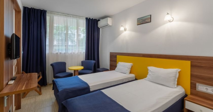 Dotari: sistem de acces in camera pe baza de cartela, aer conditionat, TV LCD, telefon, baie cu cabina de dus, cosmetice hoteliere, suport bagaje.