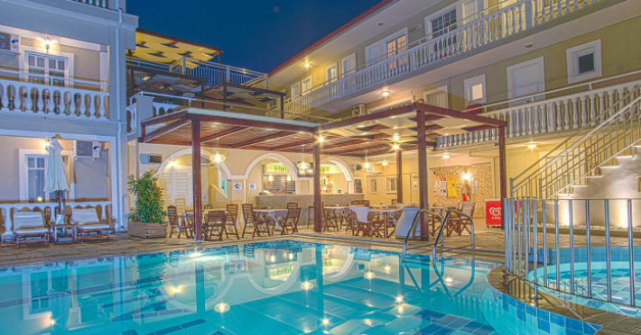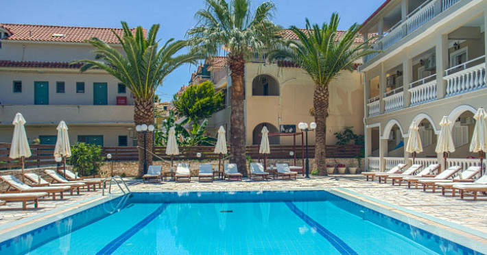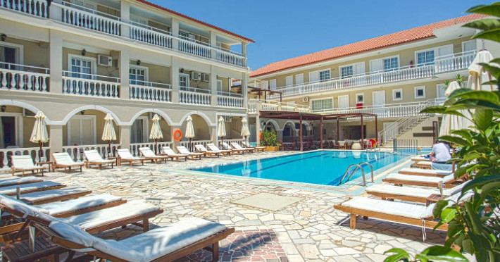 Hotelul este situat la numai 50 m de plaja cu nisip din Laganas, pe coasta sudica a insulei Zakynthos. Centrul statiunii se afla la 400 m, iar in apropierea hotelului se afla taverne si magazine. Aeroportul se afla la 3 km, iar orasul Zakynthos este la 6 km.Datorita dinamicitatii domeniului disponibilitatea ofertelor se modifica de la un moment la altul. De aceea ofertele sunt valabile in limita locurilor disponibile. Agentia nu este responsabila pentru eventualele neconcordante care pot aparea intre informatiile privind tarifele si alte detalii din site si informatiile primite in agentie. In aceste cazuri vor avea prioritate, intotdeauna, informatiile primite in agentie.