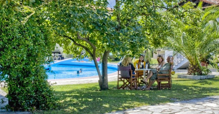 A homemade buffet breakfast is served each morning, while the dinner is served as set menu with choice between 2 dishes daily. Hotel's restaurant serves food of Greek and foreign cuisine, all cooked with quality products and Thassian virgin olive oil Upon request, traditional local dishes can be prepared with the purest ingredients. A wide range of drinks, and some “meze dishes” can be prepared at the pool bar.