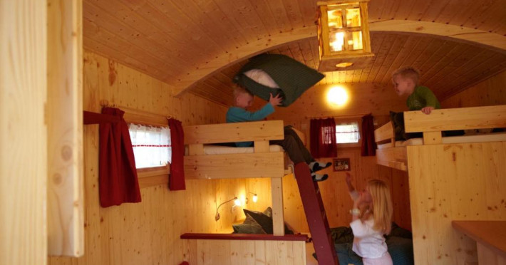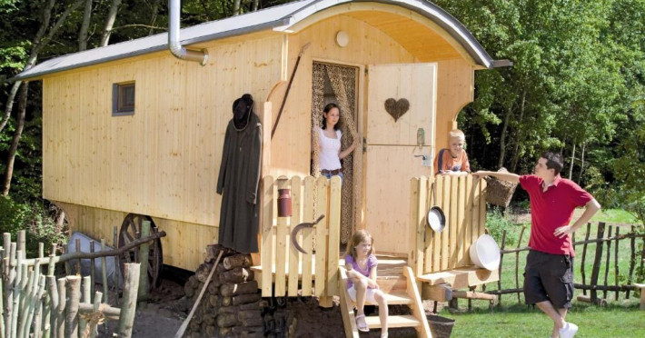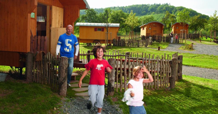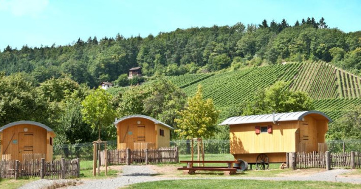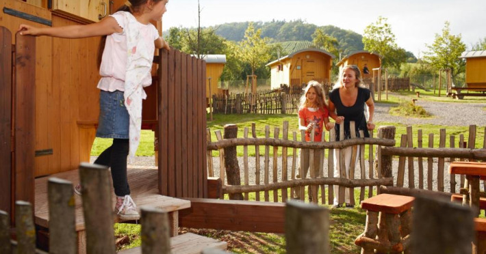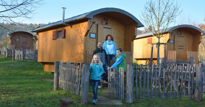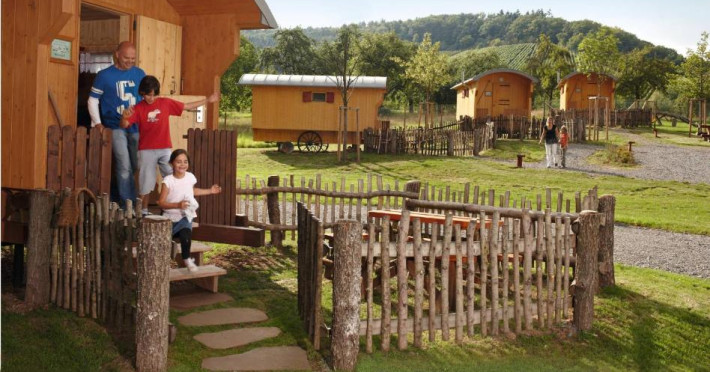 Erlebnispark Tripsdrill Natur-Resort oferă sejururi unice in case mobile din lemn, care au forma unor rulote ciobănești sau a unei case in copac. Unitătile de cazare au sistem de incălzire si o zonă de relaxare in aer liber, cu vedere la peisajul șvab și la masivul Michaelsberg.