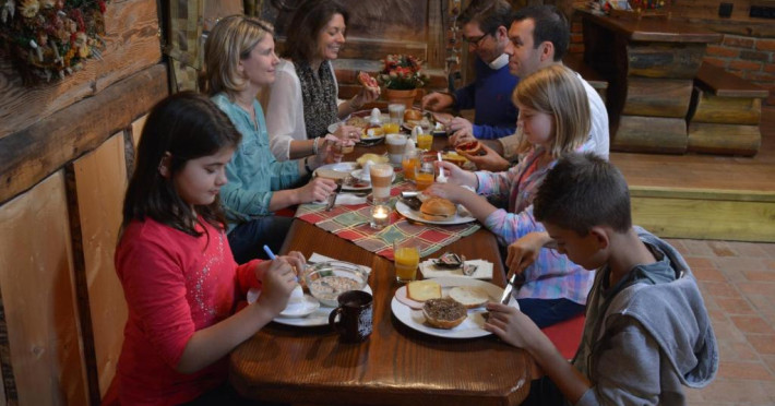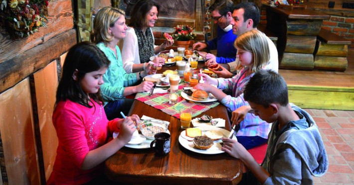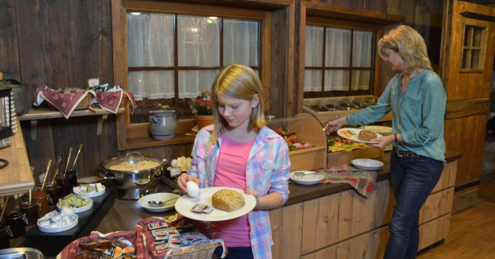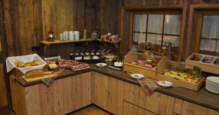 Proprietatea oferă micul dejun in fiecare zi, iar restaurantul in stil alpin este deschis in zilele de sambătă si duminică și in timpul vacantelor școlare. Oaspetii au la dispozitie facilități de grătar, dar pot lua masa si la Hanul Altweibermühle, aflat in parcul de aventuri.