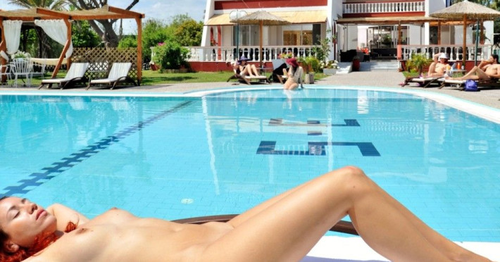 Naturist Angel Club Hotel - boutique 32 room three-star property has recently been renovated and can be considered a good three-star hotel. The rooms all have private bathroom facilities, and views of the mountains, pool or the ocean. The hotel’s restaurant is known for its wonderful Greek food, but also prepares continental and other cuisines. In addition to the pool, the hotel has a large garden area for relaxing, with a garden-style chess game where the players stand up to play. Upon arrival guests are treated to fresh fruit and wine. Guests are encouraged to relax and enjoy the wonderful weather and hotel grounds au naturel.