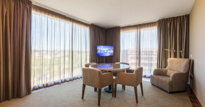 Camerele moderne de la NAU Salgados Palace au intrare privată, baie, TV cu ecran plat cu canale prin cablu și minibar. Unele camere au, de asemenea, balcon și vedere la ocean și la terenul de golf.
