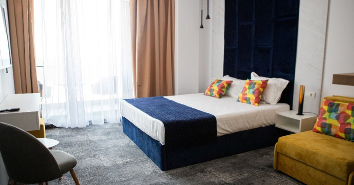 Camerele sunt dotate cu TV smart, minibar, sistem modern de climatizare, acces pe baza de cartela magnetica, baie proprie cu cabina de dus, uscator de par, WIFI.