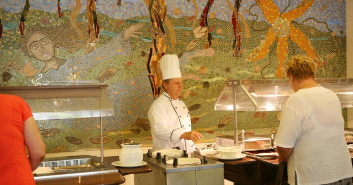 La Navarria oaspeții au la dispoziție un restaurant care servește mâncare în stil bufet și à la carte. Preparate din bucătăria internațională așteaptă să fie degustate în fiecare zi la micul dejun, prânz și cină. Masa poate fi servită atât în interior, cît si în aer liber, pe terasă, în funcție de vreme. Oaspeţii pot avea diverse băuturi răcoritoare sau alcoolice la bar.
