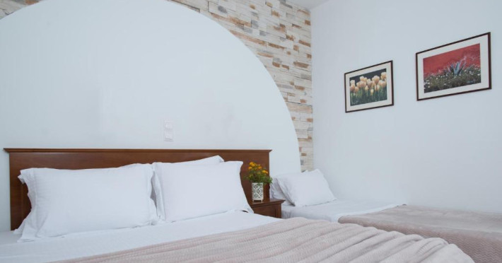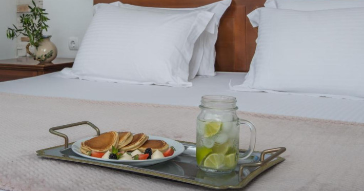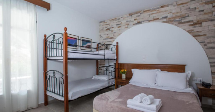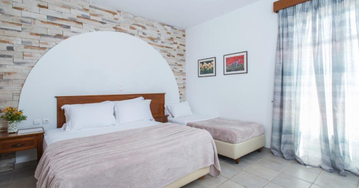 În camere există baie cu cadă sau duș prevăzută cu foehn. Camerele de la Naxos Palace au în dotare aer condiționat și Tv. Curățenia in cameră se face zilnic.