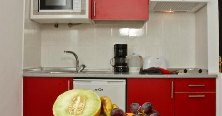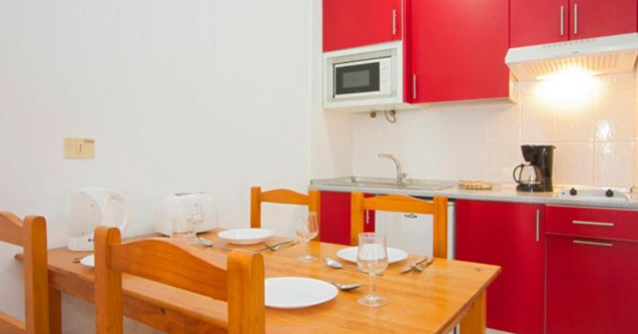 Apartamentele au pardoseală din gresie și sunt decorate in culori vesele. Include o bucătărie utilată cu plită, ceainic și cuptor cu microunde.