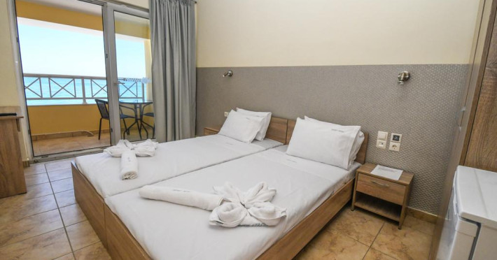 Sunt disponibile 28 camere. Camerele de la Nefeli Hotel au în dotare aer condiționat și Tv. Unele camere au balcon cu vedere la mare, unde oaspeții pot admira apusul sau răsăritul soarelui. În camere există baie cu cadă sau duș ce are în dotare foehn și articole de toaletă gratuite. Fiecare cameră dispune de minibar. Oaspeții pot solicita serviciul de room service pentru a servi masa sau diverse băuturi. Oaspeții au acces gratuit la serviciul Wi-fi în camere. Curățenia in cameră se face zilnic. Proprietatea oferă camere pentru familie cu o suprafață mai mare și un număr mai mare de paturi față de cele standard. Se pot rezerva de asemenea camere pentru nefumători.