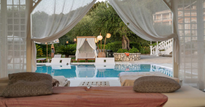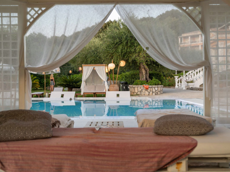 WELCOME TO NEFELI HOTELDesigned as a typical Corfiot Mansion and set on Kommeno Hill, about 12km north of Corfu town, Nefeli Hotel creates an air of relaxation and tranquility in a perfect setting surrounded by colorful gardens, palms, and wooded green groves.Nefeli Hotel has an outdoor pool with sun loungers and daybeds, surrounded by olive trees & tropical plants, and a pool bar where you can enjoy coffee, ice cream, and refreshing cocktails in the shade of large pergolas.Glorious views of the crystal-clear waters of the Ionian Sea and Corfiot landscape come as standard at Nefeli Hotel. Yet it is just a 20-minute drive to the mesmerizing historical center of Corfu Town and only 800 meters distance to the next sandy beach.The charming 45 rooms of Nefeli Hotel come all in an individual design and style, some of them including cinematic panoramic landscape views.WELCOME TO NEFELI HOTELDesigned as a typical Corfiot Mansion and set on Kommeno Hill, about 12km north of Corfu town, Nefeli Hotel creates an air of relaxation and tranquility in a perfect setting surrounded by colorful gardens, palms, and wooded green groves.Nefeli Hotel has an outdoor pool with sun loungers and daybeds, surrounded by olive trees & tropical plants, and a pool bar where you can enjoy coffee, ice cream, and refreshing cocktails in the shade of large pergolas.Glorious views of the crystal-clear waters of the Ionian Sea and Corfiot landscape come as standard at Nefeli Hotel. Yet it is just a 20-minute drive to the mesmerizing historical center of Corfu Town and only 800 meters distance to the next sandy beach.The charming 45 rooms of Nefeli Hotel come all in an individual design and style, some of them including cinematic panoramic landscape views.