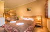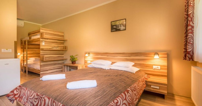 Pensiunea dispune de 46 locuri de cazare, impartite in 6 camere duble cu pat matrimonial, 2 apartamente si 7 camere familiale, cu pat matrimonial si 2 paturi supraetajate. Camerele sunt dotate cu baie proprie complet echipata, cu TV LCD, cu internet Wireless gratuit, cu terase, saltele comode Memory Foam, posibilitati ideale pentru relaxare si odihna. Living-ul pensiunii este spatios, cu panorama, modern mobilat, televizor cu ecran mare LCD Smart, incalzire in pardoseala, iluminat cu efecte de lumini. Sala de mese are o capacitate de 50 de persoane si este folosita pentru a servi micul dejun si cina.
