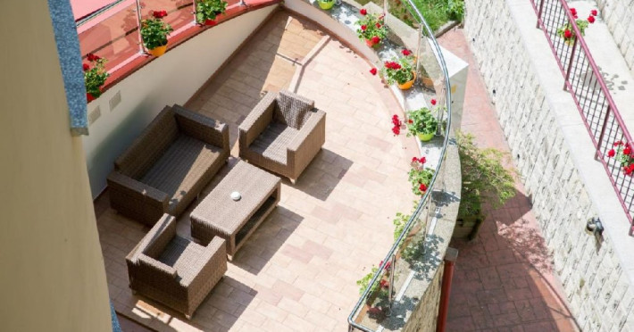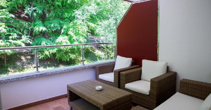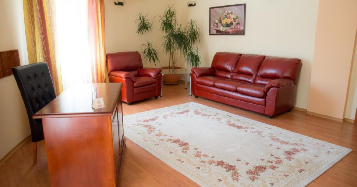 Apartamentul VIP are aceeasi structura ca si apartamentele standard cu mentiunea ca dispune de 2 balcoane, vedere atat spre fata hotelului cat si spre partea din spate, suprafata foarte mare si dressing.