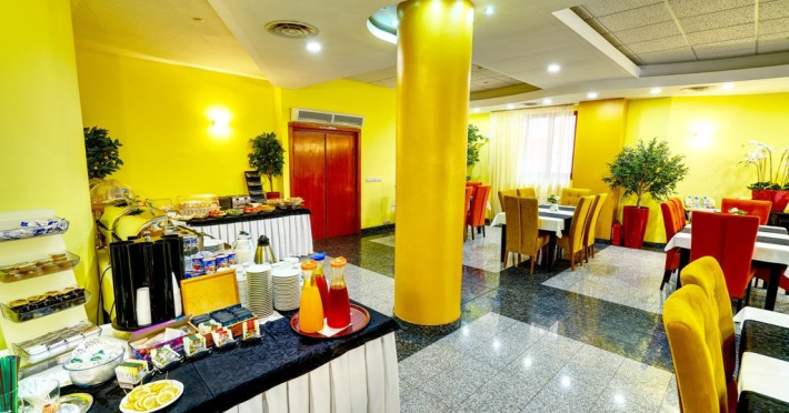 Deschis pentru: Mic dejun, Pranz, Cina Meniu: Bufet si a la carte.