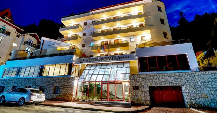 Hotel Nemira este situat in inima Statiunii Slanic Moldova, chiar la poalele Muntilor Nemira. Acesta are o constructie noua ce imbina stilul clasic cu cel modern. Situat la numai 5 minute de mers catre Parcul Slanic Moldova si izvoarele curative renumite pentru actiunea lor binefacatoare.Strajuit de catre Muntii Nemira, hotelul isi asteapta oaspetii intr-o ambianta perfecta de bunastare, relaxare si liniste intr-un mediu perfect natural.