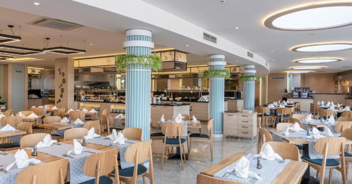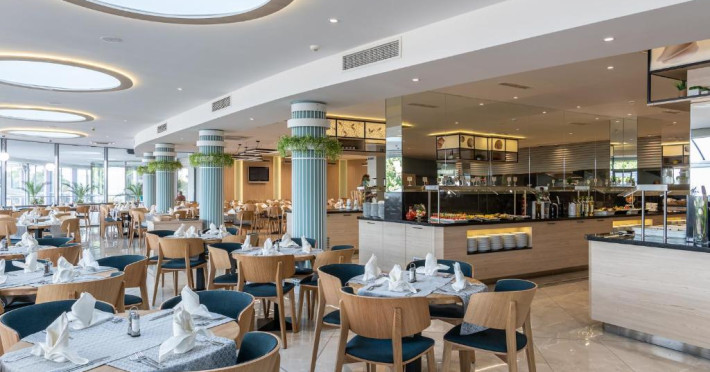 La Neptun Beach oaspeții au la dispoziție un restaurant care servește mâncare în stil bufet. Preparate din bucătăria internațională așteaptă să fie degustate în fiecare zi la micul dejun, prânz și cină. Masa poate fi servită atât în interior, cît si în aer liber, pe terasă, în funcție de vreme. 3 baruri, dintre care unul la piscină, sunt disponibile cu o ofertă variată de băuturi răcoritoare și alcoolice.