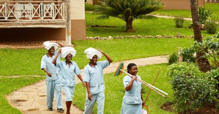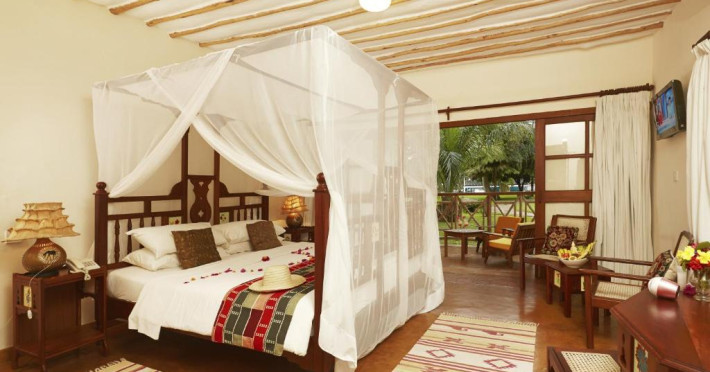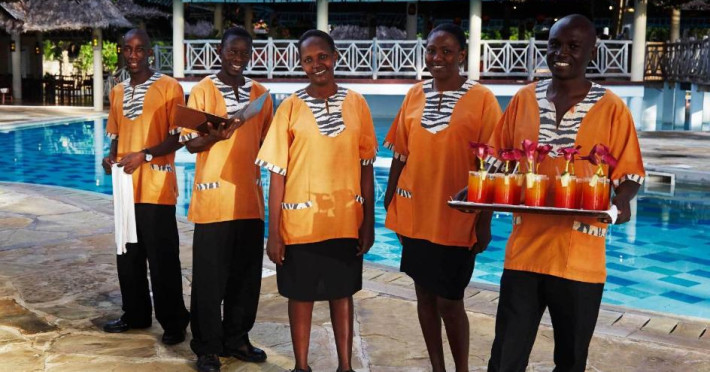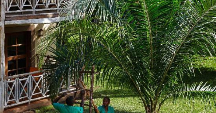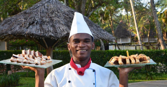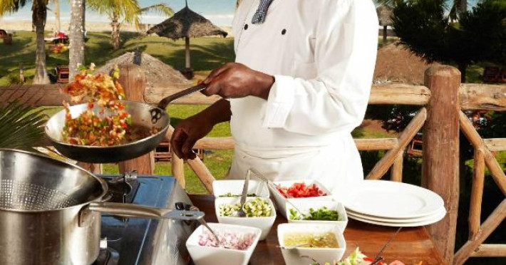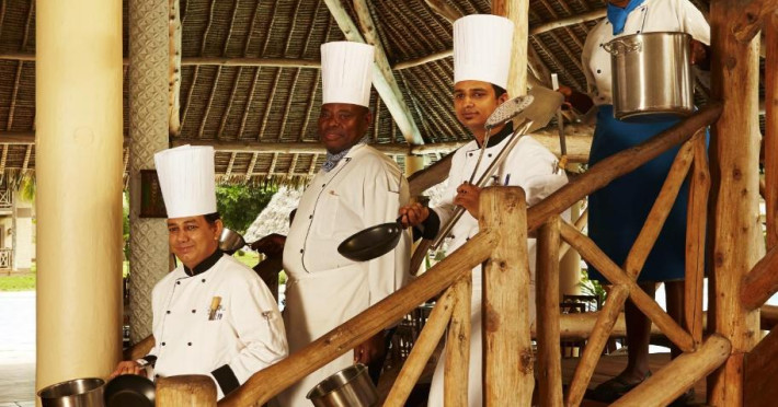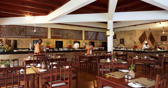 Un mic dejun tip bufet, pranzul și cina sunt servite la restaurantul Mnazi, care oferă preparate din bucătăria locală. Alternativ, oaspeții pot comanda băuturi răcoritoare la lounge barul de la piscină, Mawimbi Deck. Complexul are, de asemenea, alte 2 baruri.