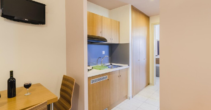 Camerele dispun de chicineta, TV, AC, free wi-fi, frigider si balcon.Alaturi de piscina exterioara se afla un pool bar unde se pot servi cocktailuri si bauturi racoritoare.Pe terasa hotelului se afla amenajat spatiul pentru servirea micului dejun, unde in timpul zilei se ofera turistilor diferite preparate traditionale.