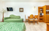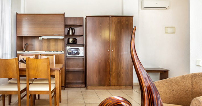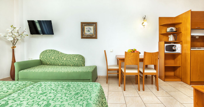 Camerele de la Hotelul Nereides sunt spatioase si functionale si fiecare are o baie, o chicineta si un balcon sau terasa cu vedere la piscina si gradina. Printre facilitatile standard includ un TV, un cuptor cu microunde si un prajitor de paine.
