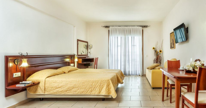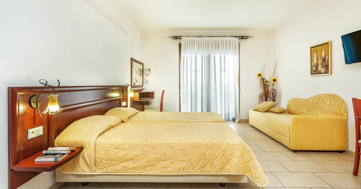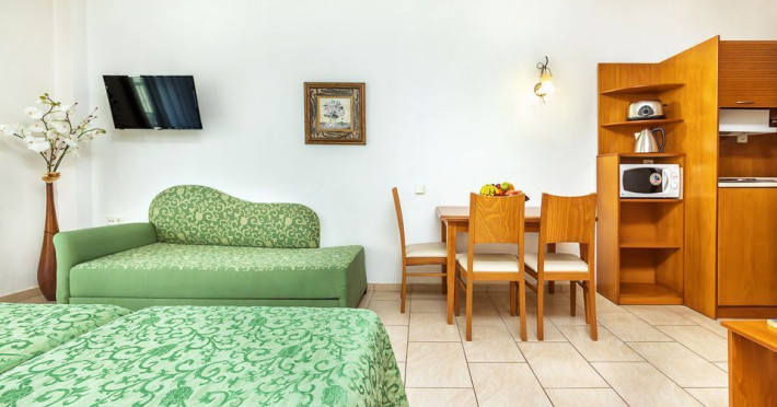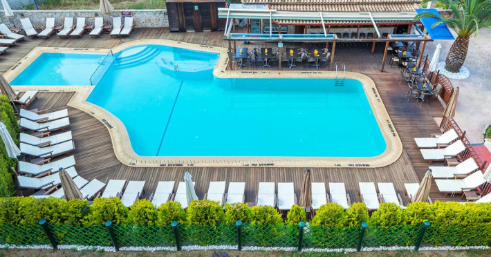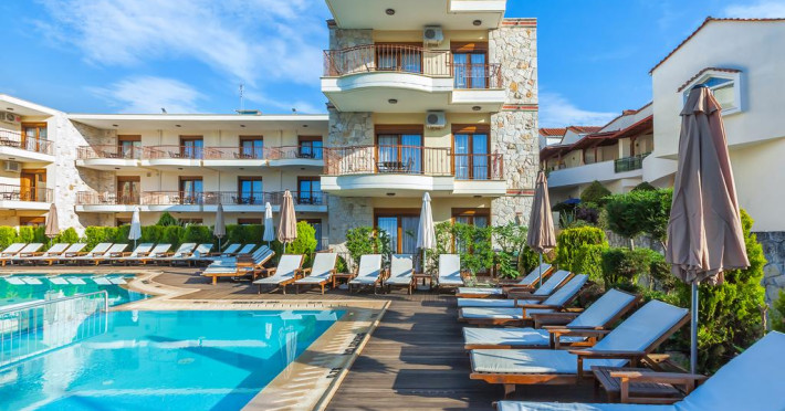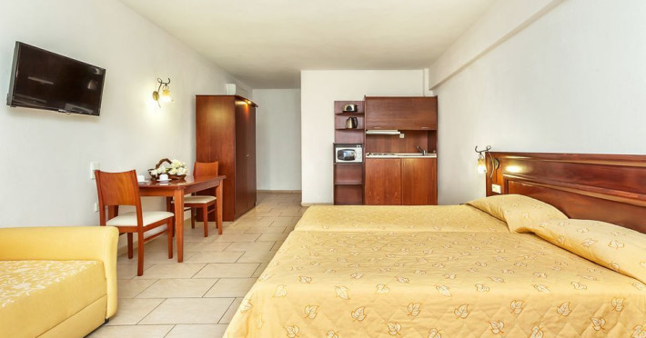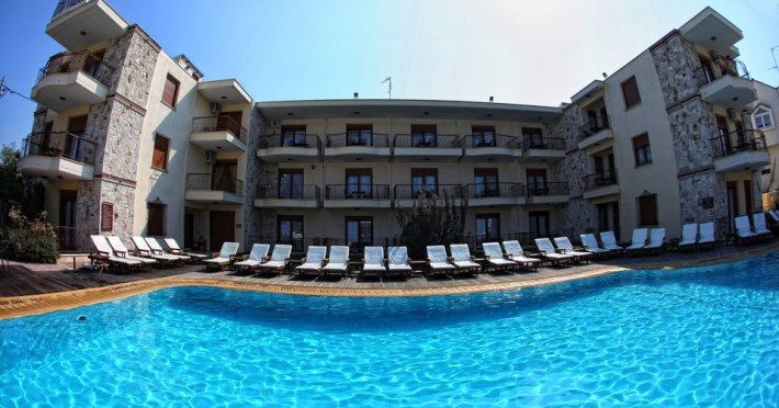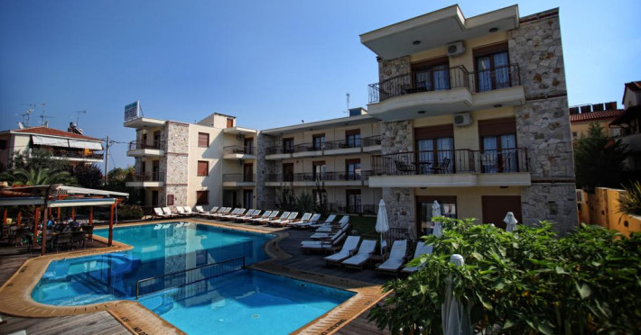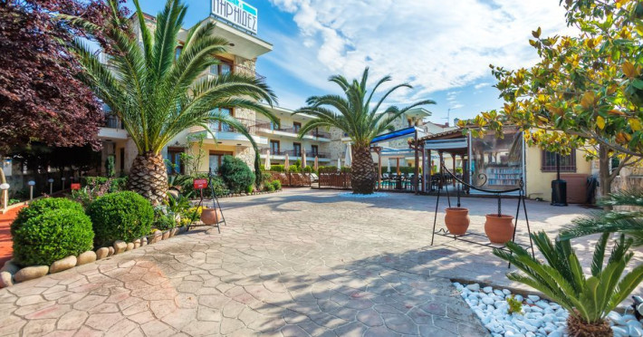 Nereides offers self-catered accommodation in the beach resort Hanioti, in Chalkidiki. Its outdoor pool has a hydro massage area and a sun-lounger terrace. There is also a children's pool.Located along the Kassandra Peninsula, Nereides is just 500 meters from the Blue Flag Hanioti Beach. The center of Hanioti is at a distance of 250 meters.Rooms at the Nereides Hotel are spacious and functional, and each has a bathroom, kitchenette and a balcony or terrace with views of the swimming pool and garden. Standard amenities include a TV, microwave and toaster.Breakfast at Nereides is served at the pool bar, and snacks are available throughout the day by the poolside. A range of cocktails and other beverages can also be ordered.The area combines the green from the mountains and the blue from the clean waters of the Toroneos Gulf. Plenty of shops, water sports, as well as an endless choice of nightlife are at easy reach.