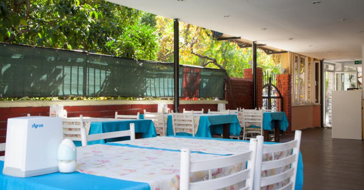 La Nergos Side Hotel oaspeții au la dispoziție un restaurant care servește mâncare à la carte. Masa poate fi servită atât în interior, cît si în aer liber, pe terasă, în funcție de vreme. Oaspeţii pot avea diverse băuturi răcoritoare sau alcoolice la bar. De asemenea , în cadrul proprietății, există cafenea și snack bar ideale pentru o gustare rapidă.