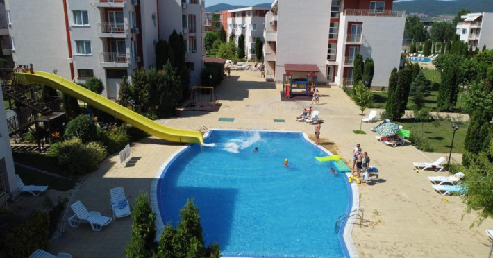 Nessebar Fort Club, Sunny Beach, Słoneczny Brzeg, Bułgaria se află in Sunny Beach, la 2,1 km de Plaja Sunny și la mai puțin de 1 km de Parcul acvatic Action. Proprietatea oferă cazare cu WiFi gratuit și climatizare, precum și o grădină și un bar. Acest apartament include un balcon și se află intr-o zonă unde puteți desfășura activități precum hiking și minigolf.
