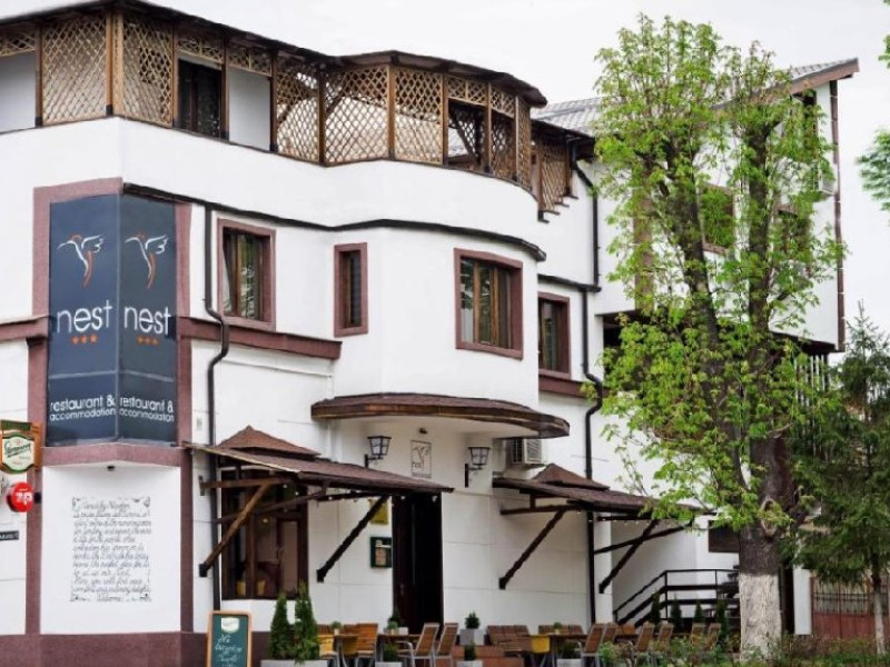 Situat pe fluviul Dunarea, intr-o zona linistita si in imediata apropiere a unui mic parc, Nest se afla la 15 minute de mers pe jos de portul din Drobeta Turnu Severin. Conexiunea Wi-Fi este gratuita in intreaga proprietate. Fiecare camera mobilata elegant are paturi confortabile, TV, baie privata si prosoape. Unele unitati au o terasa cu vedere la parc si un semineu. Restaurantul Nest serveste preparate traditionale romanesti, precum si delicii din bucataria internationala. Crama proprietatii ofera o varietate de vinuri din intreaga lume si poate fi folosita si drept sala de conferinLLe. Oaspetii pot ajunge cu usurinta in centrul orasului pentru a vizita Teatrul Theodor Costescu, Fantana Cinetica, Castelul de Apa, Cetatea Medievala, Muzeul Regiunii Portile de Fier, Muzeul de Arta, Promenada Crisan si Parcul Rozelor.Datorita dinamicitatii domeniului disponibilitatea ofertelor se modifica de la un moment la altul. De aceea ofertele sunt valabile in limita locurilor disponibile. Agentia nu este responsabila pentru eventualele neconcordante care pot aparea intre informatiile privind tarifele si alte detalii din site si informatiile primite in agentie. In aceste cazuri vor avea prioritate, intotdeauna, informatiile primite in agentie.