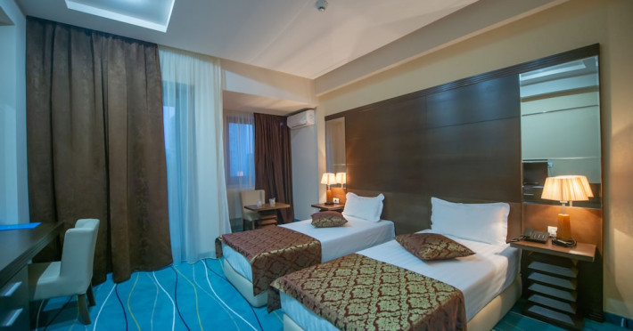 Near St. Mina Orthodox Church. With a stay at Hotel Nevada in Constanta, youll be within a 15-minute walk of Lake Siutghiol and Tabacariei Lake. This 4-star hotel is 0.5 mi (0.8 km) from St. Mina Orthodox Church and 0.6 mi (1 km) from Expoflora Botanical Garden. Make yourself at home in one of the 45 individually decorated guestrooms, featuring minibars and flat-screen televisions. Complimentary wireless Internet access keeps you connected, and digital programming is available for your entertainment. Bathrooms feature bathtubs or showers with rainfall showerheads and hair dryers. Conveniences include safes and desks, and housekeeping is provided daily. You can enjoy a meal at the restaurant serving the guests of Hotel Nevada, or stop in at the snack bar/deli. Wrap up your day with a drink at the bar/lounge. Buffet breakfasts are served on weekdays from 7:30 AM to 10:00 AM and on weekends from 8:00 AM to 10:00 AM for a fee. Take in the views from a terrace and make use of amenities such as complimentary wireless Internet access and wedding services. Additional features at this hotel include a television in a common area and a ballroom.Datorita dinamicitatii domeniului disponibilitatea ofertelor se modifica de la un moment la altul. De aceea ofertele sunt valabile in limita locurilor disponibile. Agentia nu este responsabila pentru eventualele neconcordante care pot aparea intre informatiile privind tarifele si alte detalii din site si informatiile primite in agentie. In aceste cazuri vor avea prioritate, intotdeauna, informatiile primite in agentie.