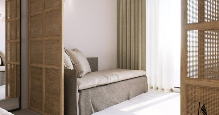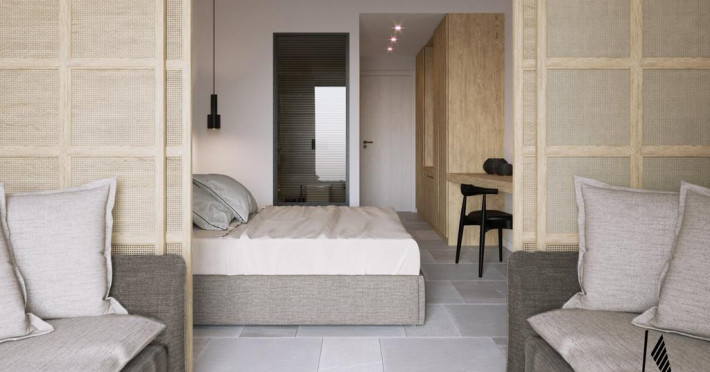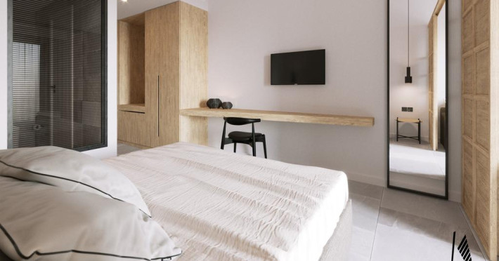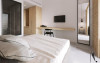 Camerele luminoase de la New Aqua sunt dotate cu aer condiționat și Tv cu canale prin satelit. Unele camere au balcon, cu vedere la piscină, unde oaspeții se pot relaxa în voie. În camere există baie cu cadă sau duș ce are în dotare foehn și articole de toaletă gratuite. Curățenia in cameră se face zilnic. Proprietatea oferă camere pentru familie cu o suprafață mai mare și un număr mai mare de paturi față de cele standard. Se pot rezerva de asemenea camere pentru nefumători.