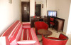 There is a 24h shuttle between the hotel and the airport 24h a day. In the vicinity an aqua park offers entertainment during the best time of the year. The hotel New Farah Hotel has a 24h reception, a lobby, Wi-Fi, internet access, a shop, parking spaces as well as a TV lounge with satellite TV. In the outdoor area you will find a garden as well as a pool (open all year), where sun loungers are available for free. Furthermore, outside you can find a sun terrace. Your valuables can be stored in the hotel safe. To clean your clothes there is a laundry service. For your comfort there is a concierge service. Due to its barrier-free facilities , such as barrier-free entrances, the hotel is also suitable for wheelchair users. Catering The drinks menu of the hotel includes water, soft drinks and wine. Sports & Leisure Special offers for all golf enthusiast provides the 9-hole golf course. In addition, there is a riding facility in the surroundings of the hotel. For tennis enthusiasts the hotel offers a tennis school. Furthermore, various water sports such as fishing and diving are offered in the area.There is a 24h shuttle between the hotel and the airport 24h a day. In the vicinity an aqua park offers entertainment during the best time of the year. The hotel New Farah Hotel has a 24h reception, a lobby, Wi-Fi, internet access, a shop, parking spaces as well as a TV lounge with satellite TV. In the outdoor area you will find a garden as well as a pool (open all year), where sun loungers are available for free. Furthermore, outside you can find a sun terrace. Your valuables can be stored in the hotel safe. To clean your clothes there is a laundry service. For your comfort there is a concierge service. Due to its barrier-free facilities , such as barrier-free entrances, the hotel is also suitable for wheelchair users. Catering The drinks menu of the hotel includes water, soft drinks and wine. Sports & Leisure Special offers for all golf enthusiast provides the 9-hole golf course. In addition, there is a riding facility in the surroundings of the hotel. For tennis enthusiasts the hotel offers a tennis school. Furthermore, various water sports such as fishing and diving are offered in the area.
