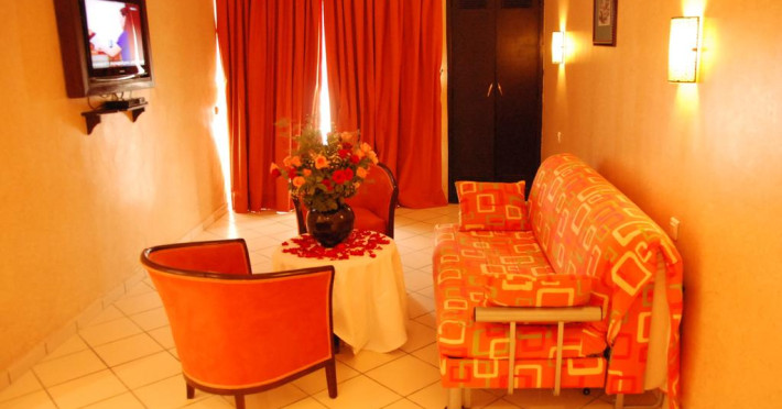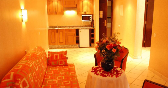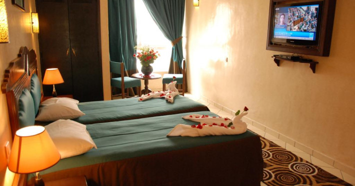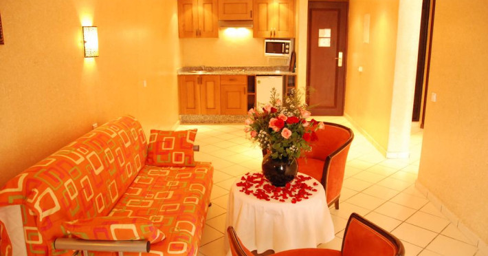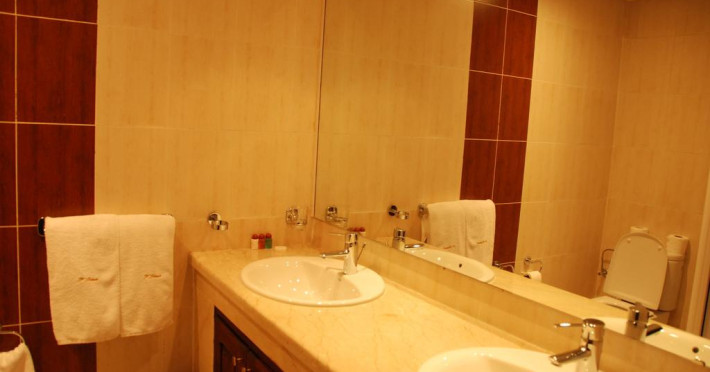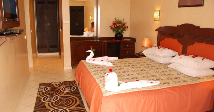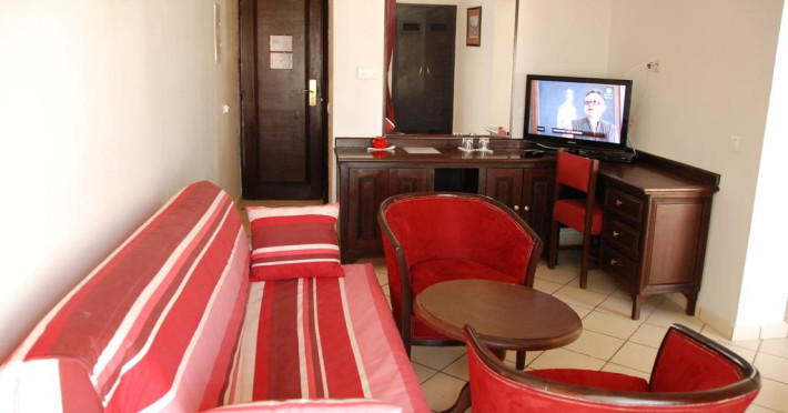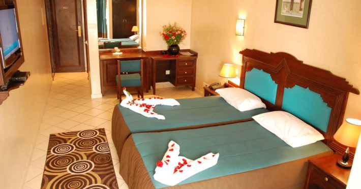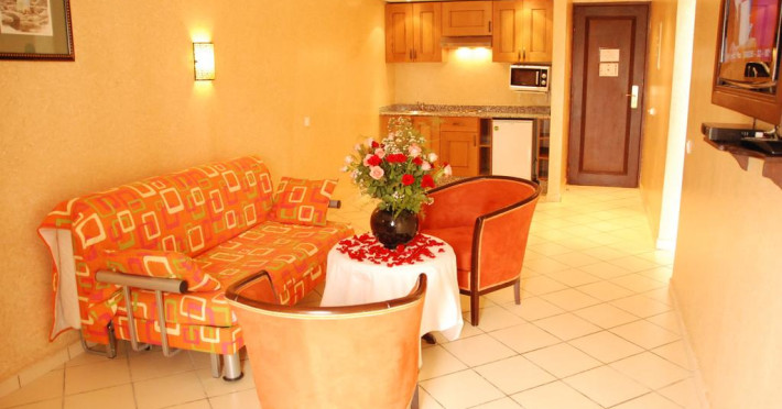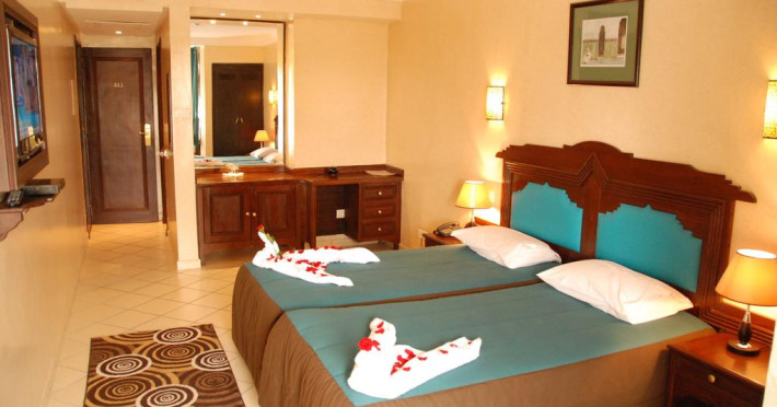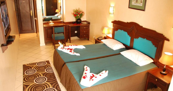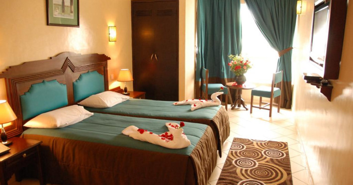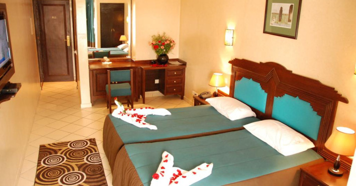 There is a 24h shuttle between the hotel and the airport 24h a day. In the vicinity an aqua park offers entertainment during the best time of the year. The hotel New Farah Hotel has a 24h reception, a lobby, Wi-Fi, internet access, a shop, parking spaces as well as a TV lounge with satellite TV. In the outdoor area you will find a garden as well as a pool (open all year), where sun loungers are available for free. Furthermore, outside you can find a sun terrace. Your valuables can be stored in the hotel safe. To clean your clothes there is a laundry service. For your comfort there is a concierge service. Due to its barrier-free facilities , such as barrier-free entrances, the hotel is also suitable for wheelchair users. Catering The drinks menu of the hotel includes water, soft drinks and wine. Sports & Leisure Special offers for all golf enthusiast provides the 9-hole golf course. In addition, there is a riding facility in the surroundings of the hotel. For tennis enthusiasts the hotel offers a tennis school. Furthermore, various water sports such as fishing and diving are offered in the area.