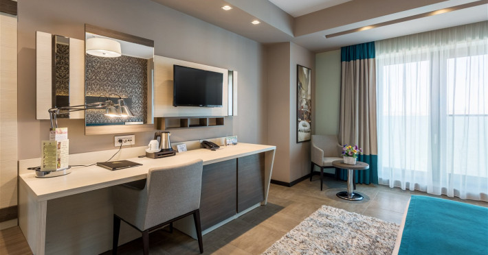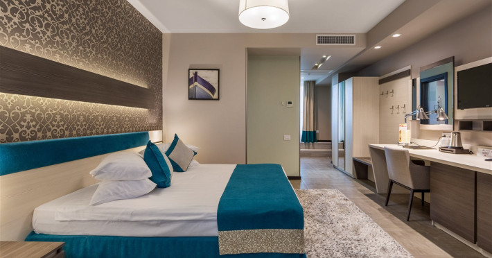 New Splendid HotelSpa este situat in statiunea Mamaia, intre malul Marii Negre si lacul Siutghiol, la numai 200 m de plaja, fiind locatia ideala pentru turistii care vor sa aiba parte de o vacanta de neuitat. Numeroase obiective turistice se afla in apropierea hotelului, printre care si Cazinoul din Mamaia la 3 km, Aqua Magic la 4,8 km, Telegondola din Mamaia la 5 km, Satul de Vacanta la 7 km, Portul Tomis si Piata Ovidiu la aproximativ 13 km. Aeroportul International Mihail Kogalniceanu se afla la 30 de km distanta. Clasificat la categoria de 4 stele, New Splendid Hotel SPA (Adults Only) pune la dispozitia oaspetilor 24 de spatii de cazare mobilate modern si dotate cu televizor, seif, telefon, birou, aer conditionat, minibar, baie private cu cada, uscator de par, papuci, halate de baie si articole de toaleta gratuite. Unele camere dispun de balcon. Accesul la Wi-Fi este disponibil gratuit in toata locatia. Restaurantul Hotelului New Splendid este locul perfect pentru turistii ce vor sa serveasca diverse preparate traditionale romanesti sau preparate din meniul international intr-o locatie superba, cu vedere catre Lacul Siutghiol. Suplimentar, hotelul ofera parcare privata, receptie deschisa non-stop, camera de bagaje, sala de conferinte si un centru wellness cu piscina interioara cu zona de hidromasaj, saune, fantana de gheata si masaj. Corpul de cazare si Centrul Wellness sunt destinate EXCLUSIV adultilor si copiilor cu varsta mai mare de 16 ani.Datorita dinamicitatii domeniului disponibilitatea ofertelor se modifica de la un moment la altul. De aceea ofertele sunt valabile in limita locurilor disponibile. Agentia nu este responsabila pentru eventualele neconcordante care pot aparea intre informatiile privind tarifele si alte detalii din site si informatiile primite in agentie. In aceste cazuri vor avea prioritate, intotdeauna, informatiile primite in agentie.