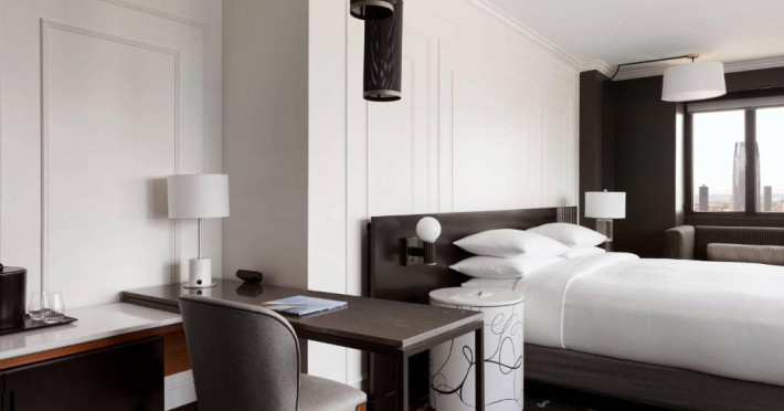 Hotelul New York Marriott Downtown are 506 camere și 7 apartamente repartizate pe 38 de etaje. Oferind cazare in cartierul financiar, această proprietate de nefumători se află la 483 de metri de Memorialul 9/11.