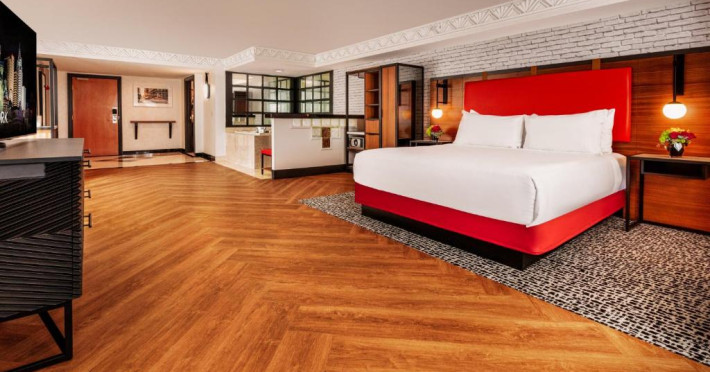 New York-New York oferă camere spațioase și moderne, dotate cu TV cu ecran plat cu canale prin cablu. Camerele includ seif in cameră și băi din granit.