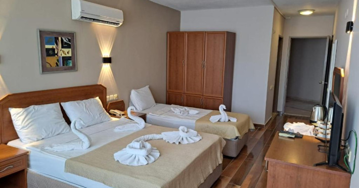 La hotel, fiecare cameră include un balcon. La Hotelul Vogue Royal Beach, toate camerele sunt dotate cu aer condiționat și TV cu ecran plat.