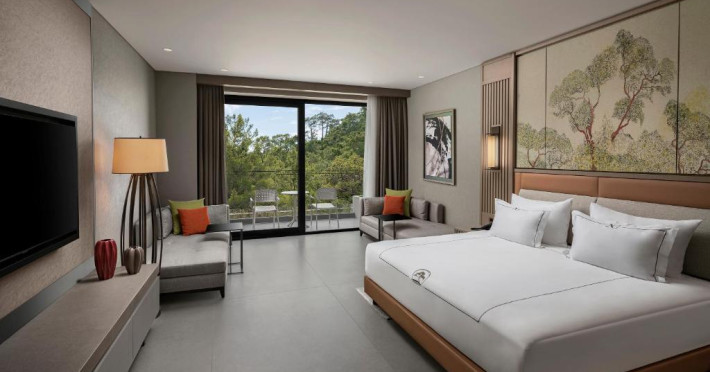 Sunt disponibile 480 camere. Unele camere au balcon cu vedere la mare, unde oaspeții pot admira apusul sau răsăritul soarelui. Camerele luminoase de la Ng Phaselis Bay sunt dotate cu parchet, aer condiționat, Tv cu canale prin satelit și seif. Un minibar și o mașină pentru preparare cafea sau ceai se află în fiecare cameră. Oaspeții pot solicita serviciul de room service pentru a servi masa sau diverse băuturi. În camere există baie cu cadă sau duș, foehn, articole de toaletă gratuite, precum și halate de baie și papuci. Oaspeții au acces gratuit la serviciul Wi-fi în camere. Curățenia in cameră se face zilnic. Proprietatea oferă camere pentru familie cu o suprafață mai mare și un număr mai mare de paturi față de cele standard.